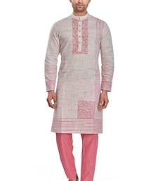 Pink hand block printed kurta with embroidery viscos kurta payjama etnic wear :: festive wear