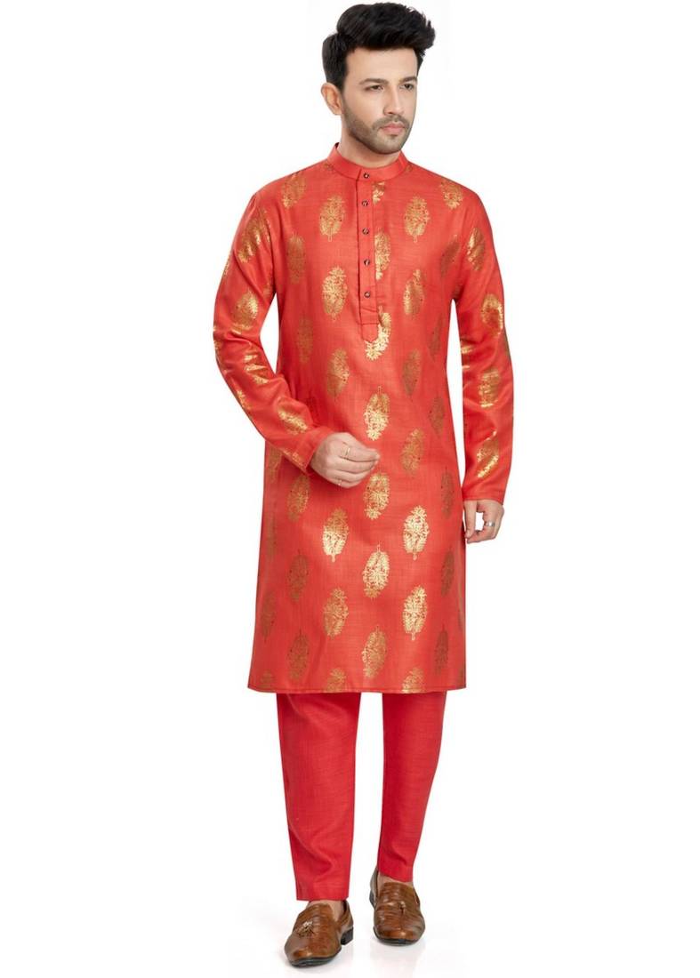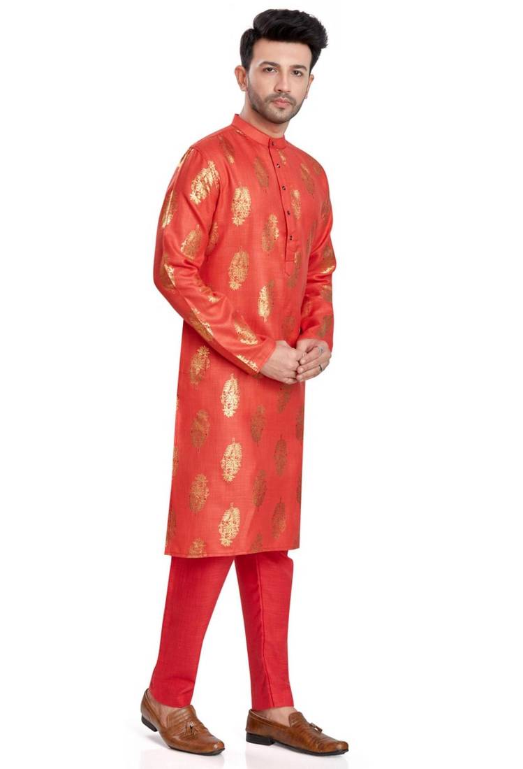 Product Name | Red Hand Block Golden Foil Printed Viscos Kurta Payjama Etnic Wear / Festive Wear | |