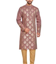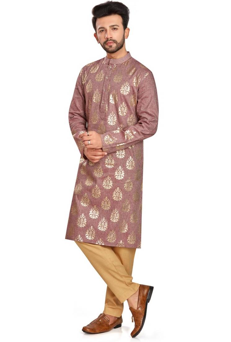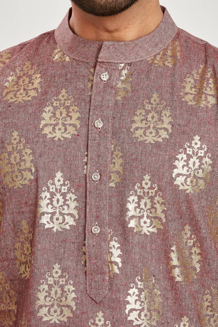 Rust brown hand block golden foil printed viscos kurta payjama ethnic wear :: festive wear
