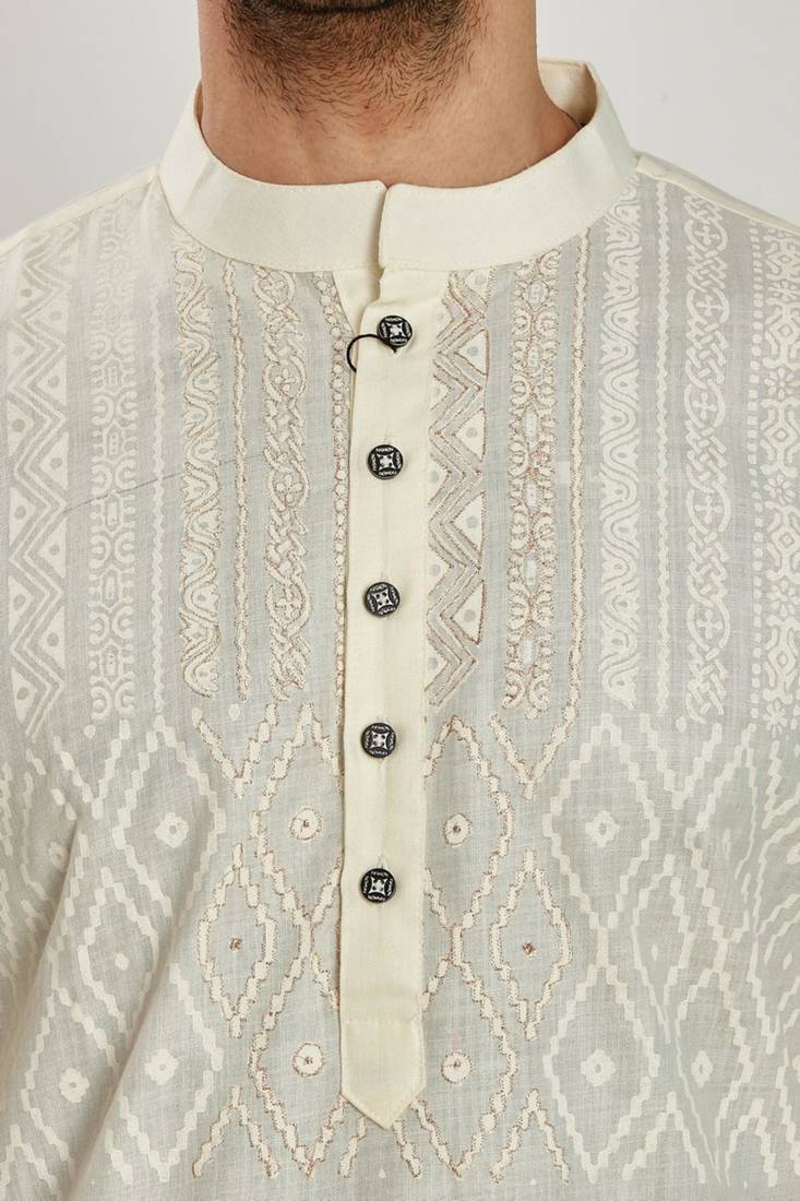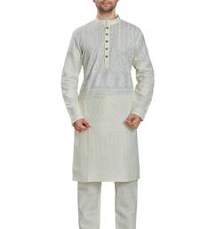 White hand block printed kurta viscos kurta payjama wear :: festive wear