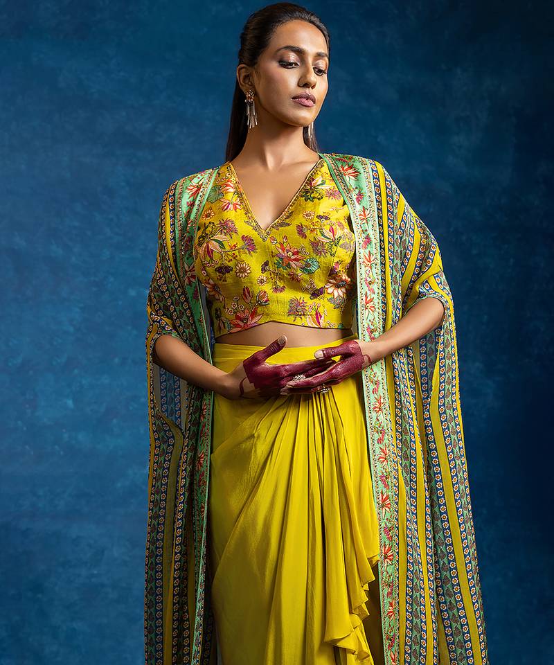 Product Name | Beige Floral Printed Crepe Co Ord Set With Cape | |