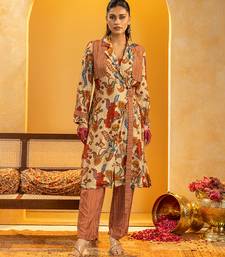 Product Description | Beige Rangtara Embellished Layered Kurta With Long Sleeves, Paired With Straight Pants In Silk.