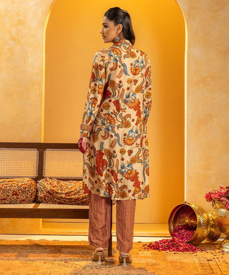 Multicolor floral printed silk kurta set
