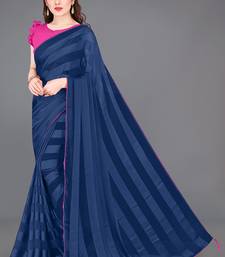 Navy blue georgette satin stripes plain ready to wear saree with unstitched blouse piece