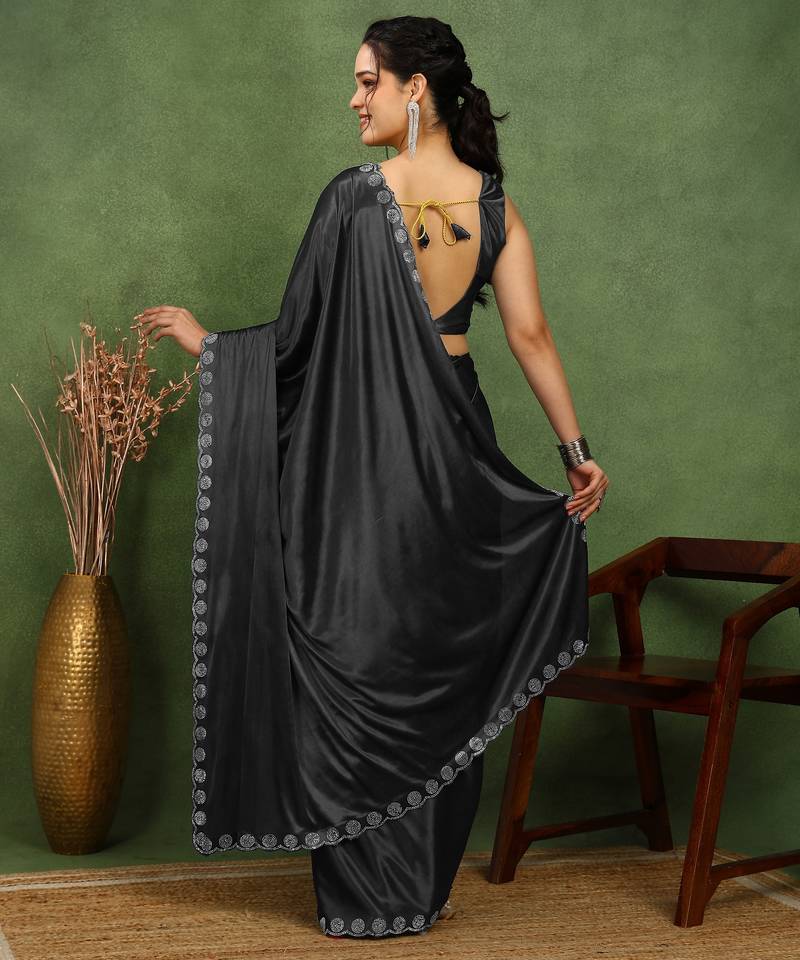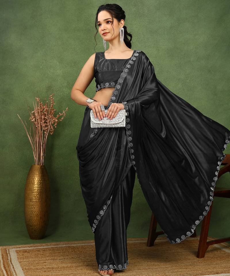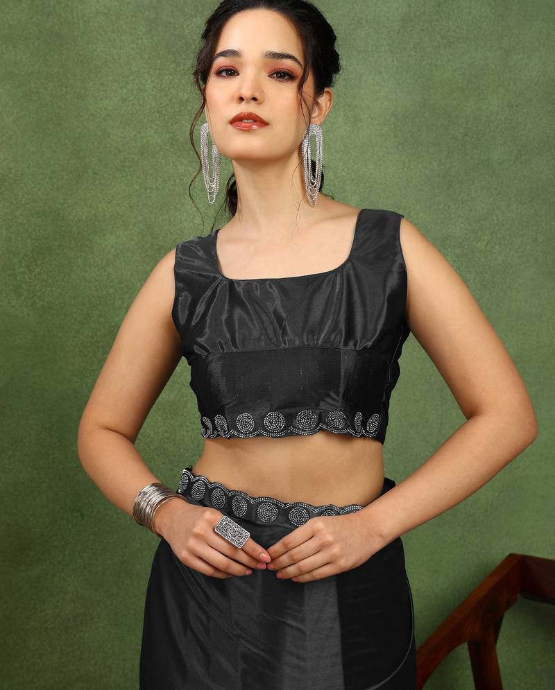 | Product Name | Party Wear Lycra Solid Embellished Saree With Unstiched Blouse Piece Black | |