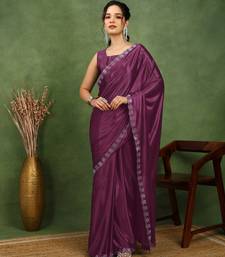 Party wear lycra solid embellished saree with unstiched blouse pieceMagenta