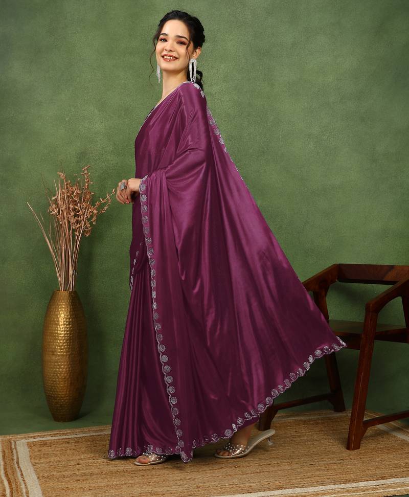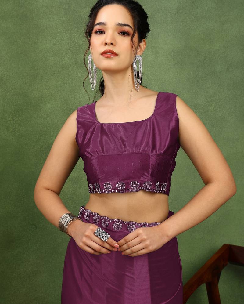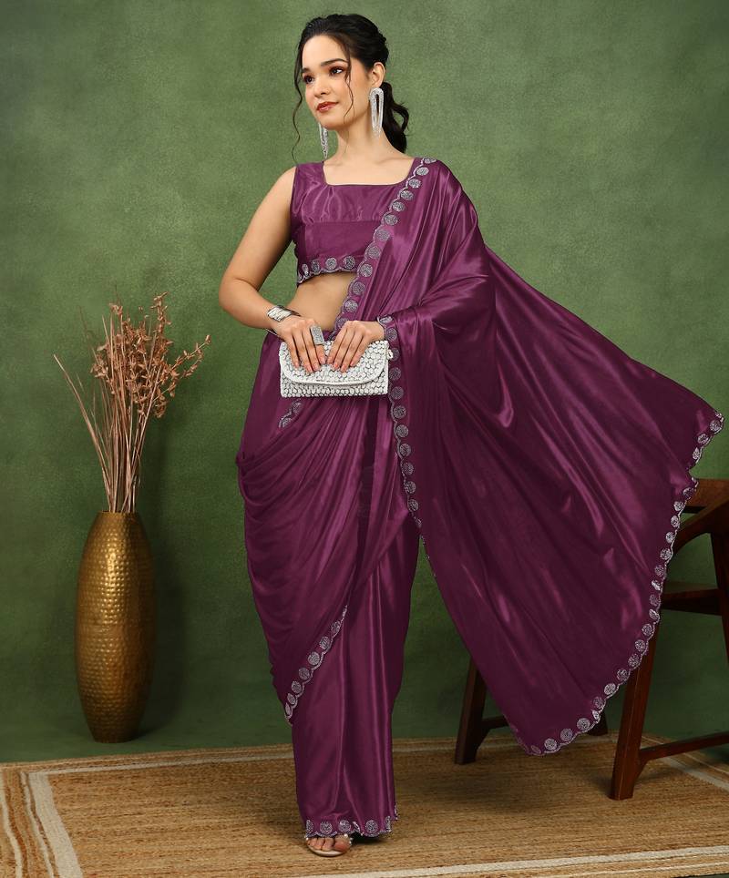 | Product Name | Party Wear Lycra Solid Embellished Saree With Unstiched Blouse Piece Magenta | |