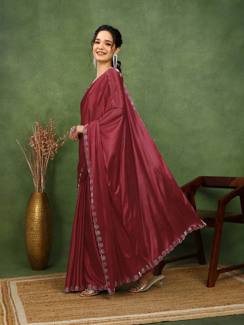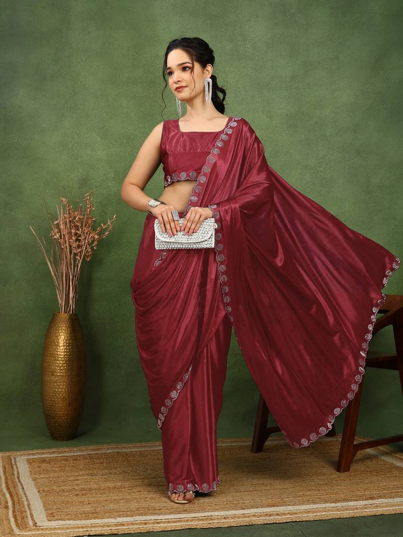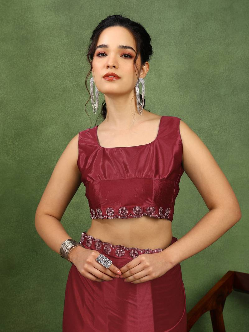 | Product Name | Party Wear Lycra Solid Embellished Saree With Unstiched Blouse Piece Maroon | |