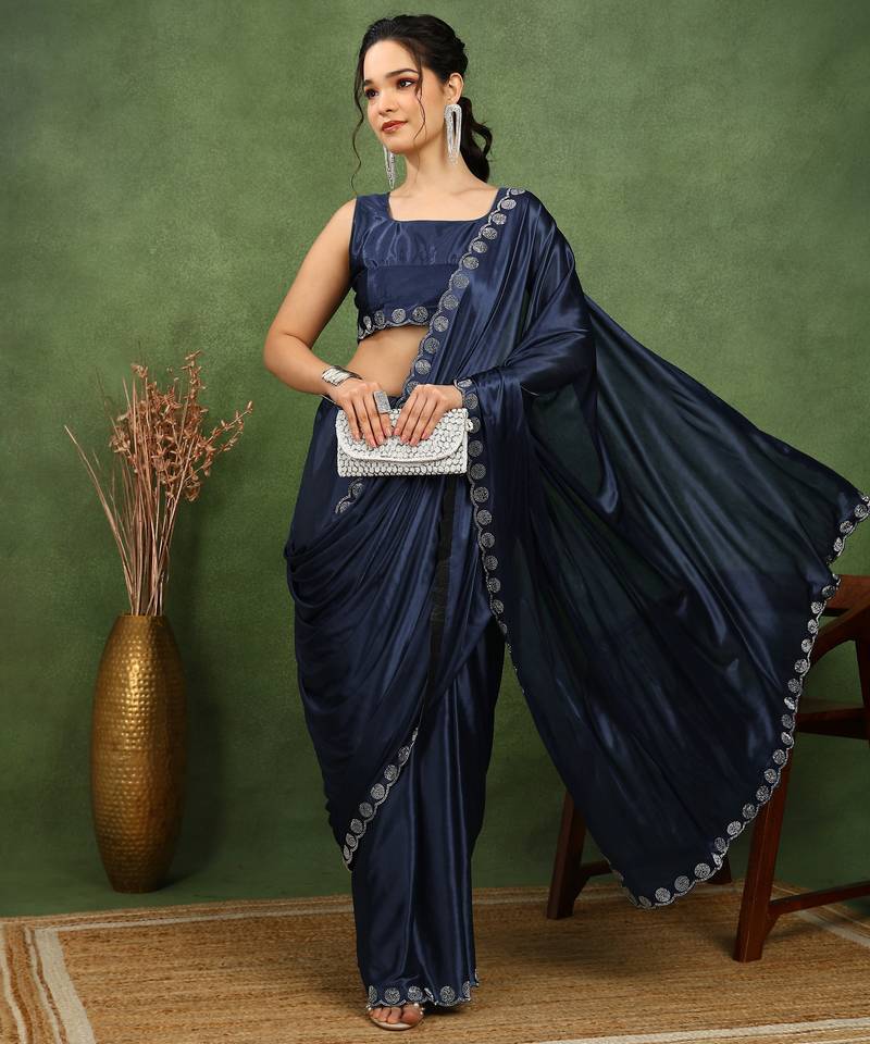 | Product Name | Party Wear Lycra Solid Embellished Saree With Unstiched Blouse Piece Navy Blue | |