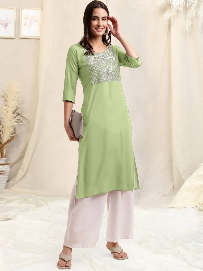 | Product Name | Pista Green, White Rayon Sequins Embroidery, Plain Pattern Kurta For Women | |