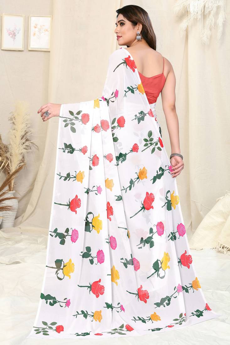 | Product Name | White Georgette Floral Print Saree With Unstitched Blouse Piece | |