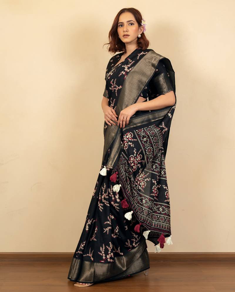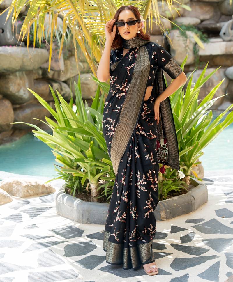 | Product Name | Black Floral Print Cotton Silk Saree With Blouse Piece | |