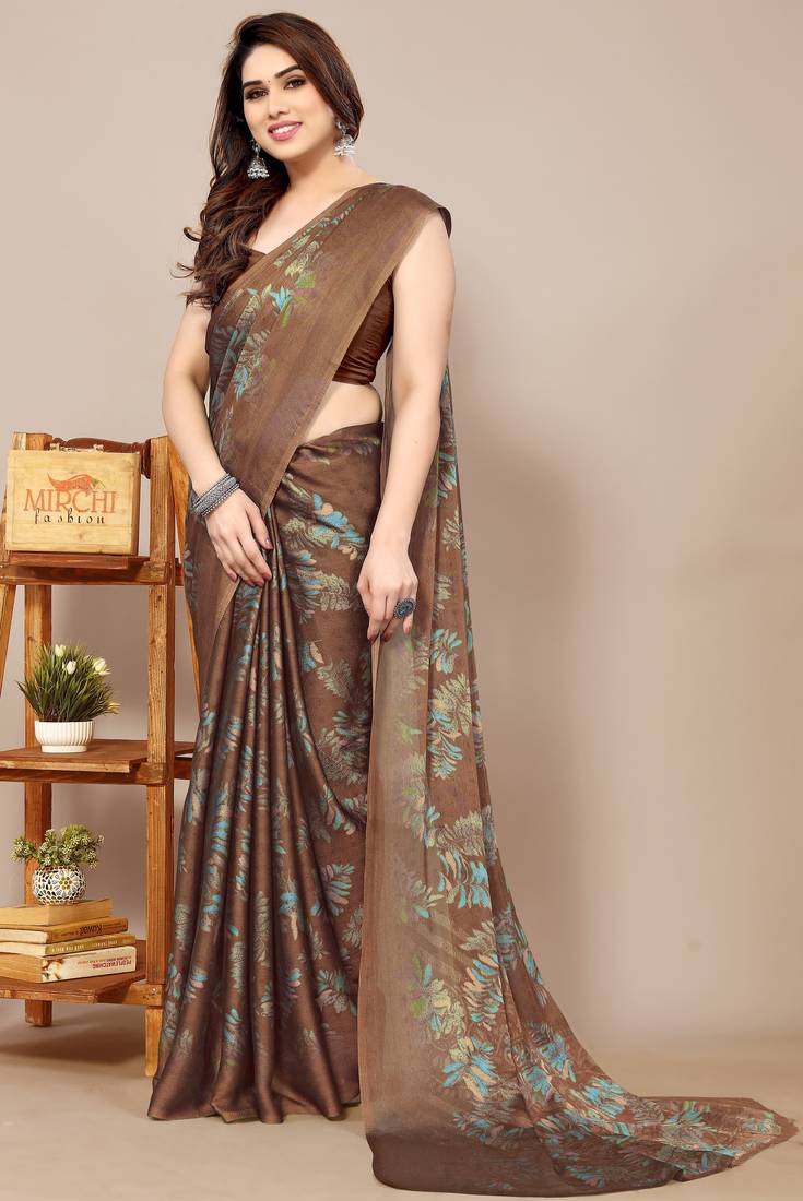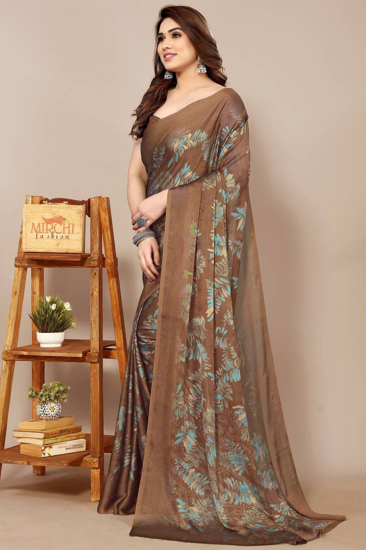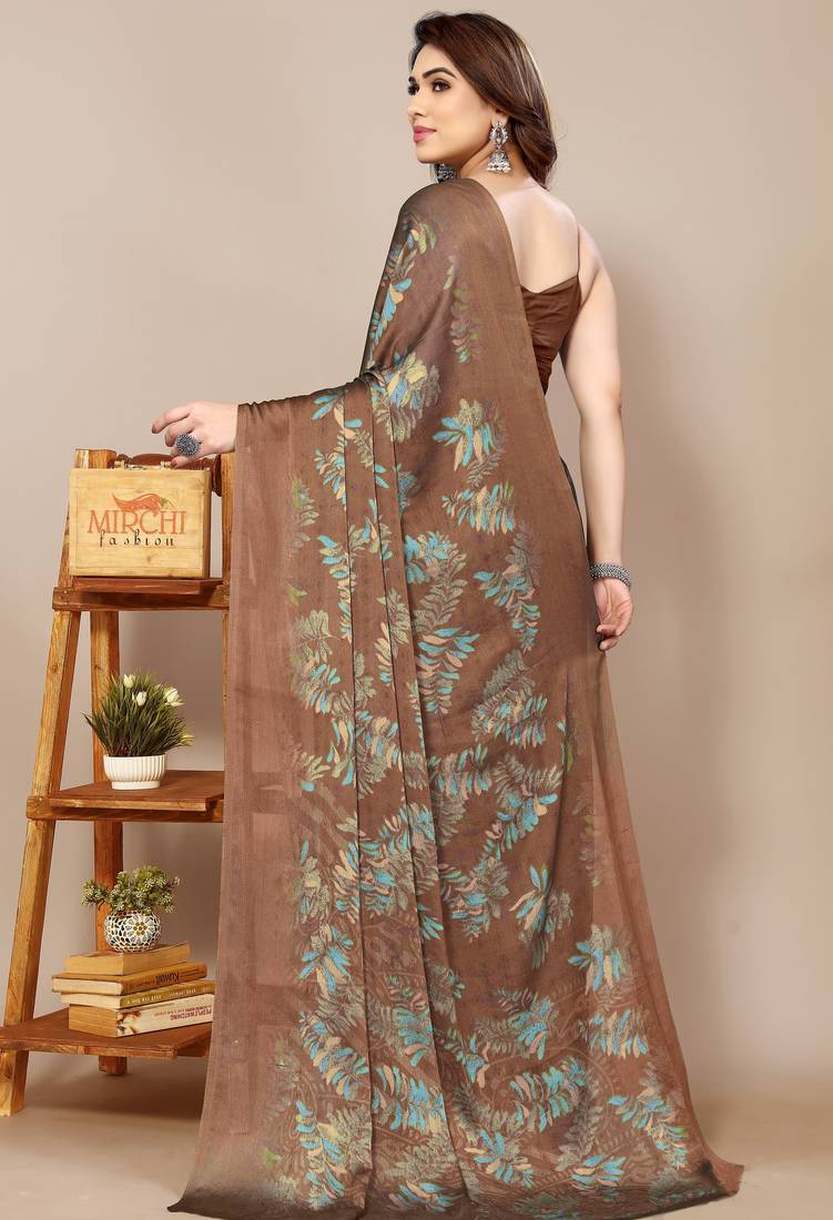| Product Name | Brown Leaf Floral Print Chiffon Saree With Blouse Piece | |