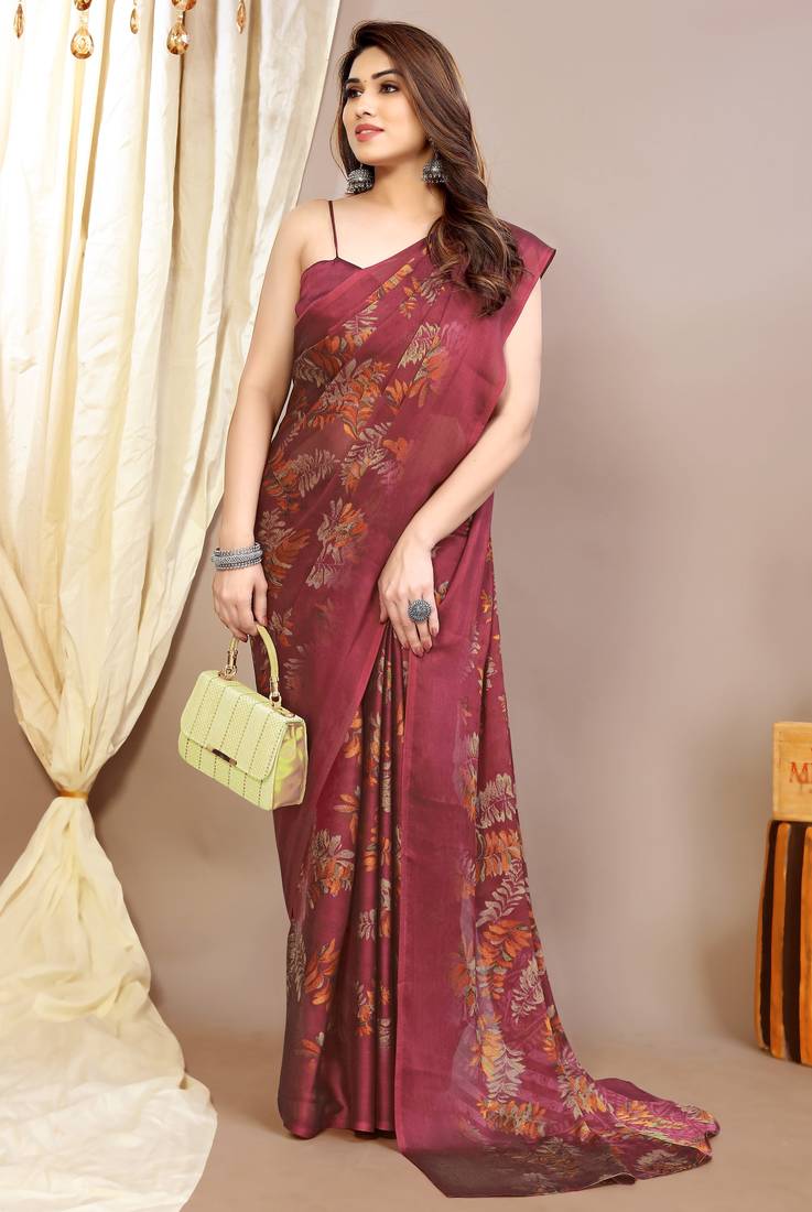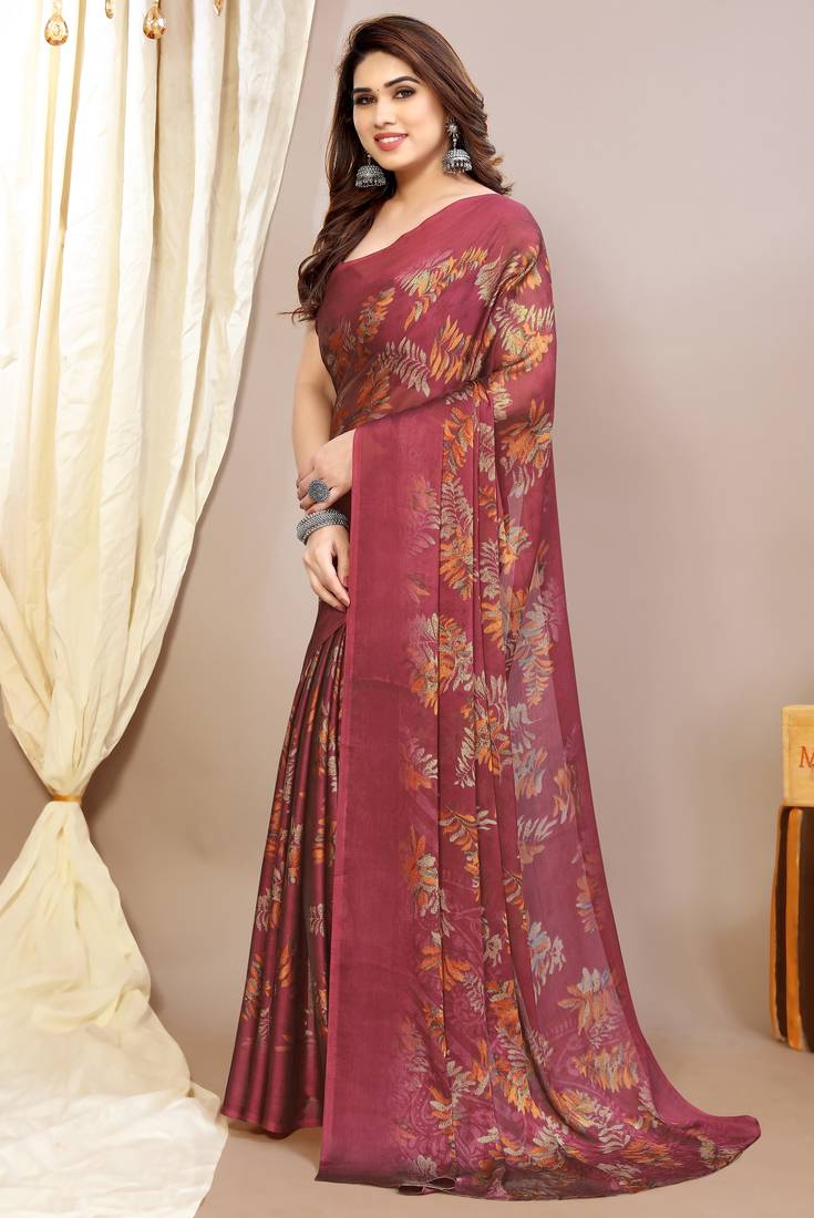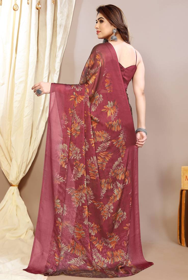 | Product Name | Maroon Leaf Floral Print Chiffon Saree With Blouse Piece | |