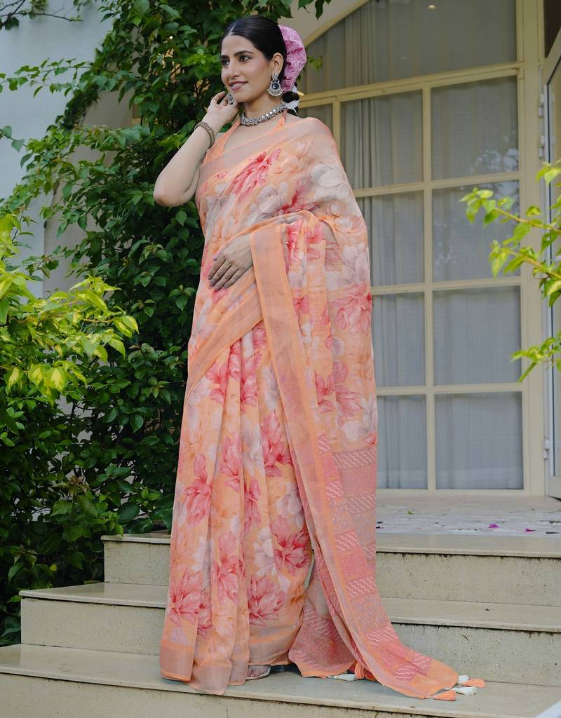 | Product Name | Orange Floral Print Cotton Blend Saree With Blouse Piece | |