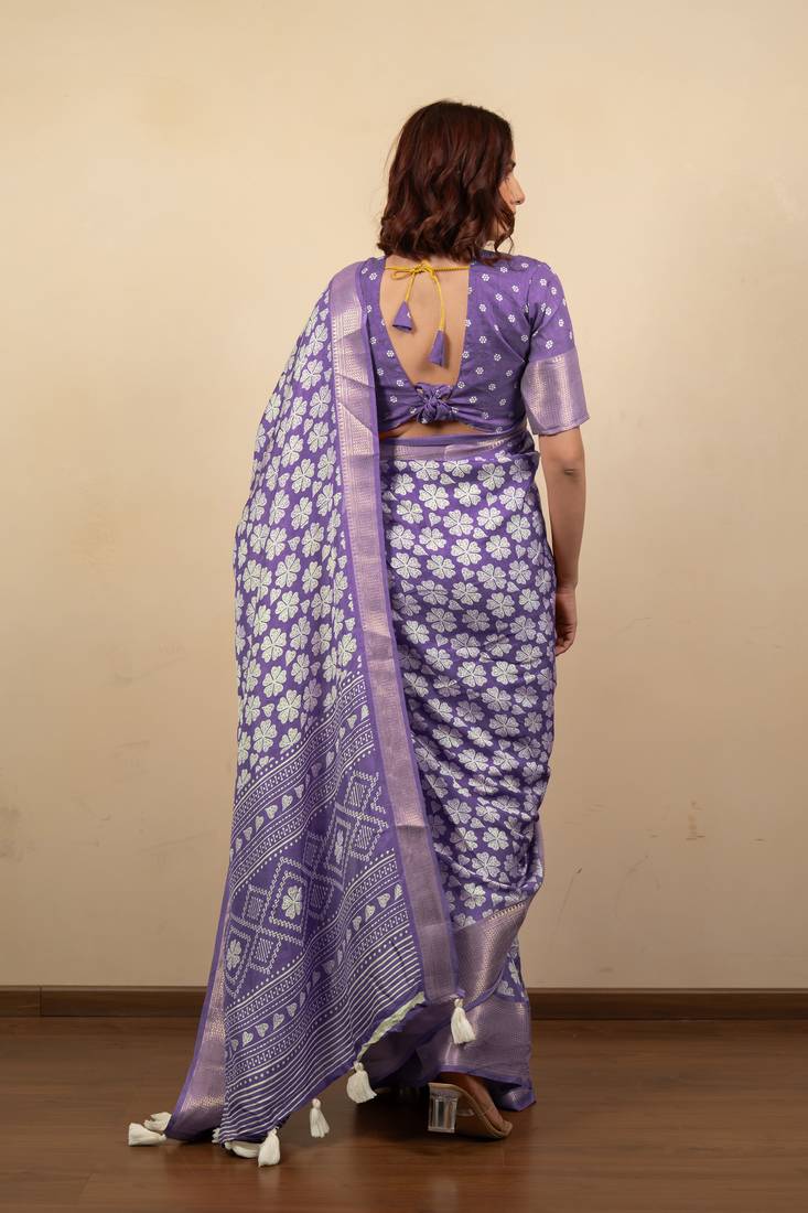 | Product Name | Purple Floral Print Cotton Silk Saree With Blouse Piece | |