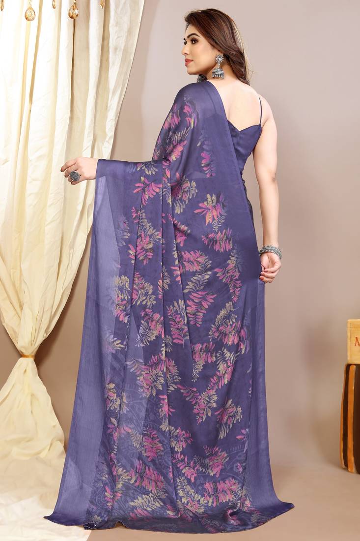 | Product Name | Purple Leaf Floral Print Chiffon Saree With Blouse Piece | |