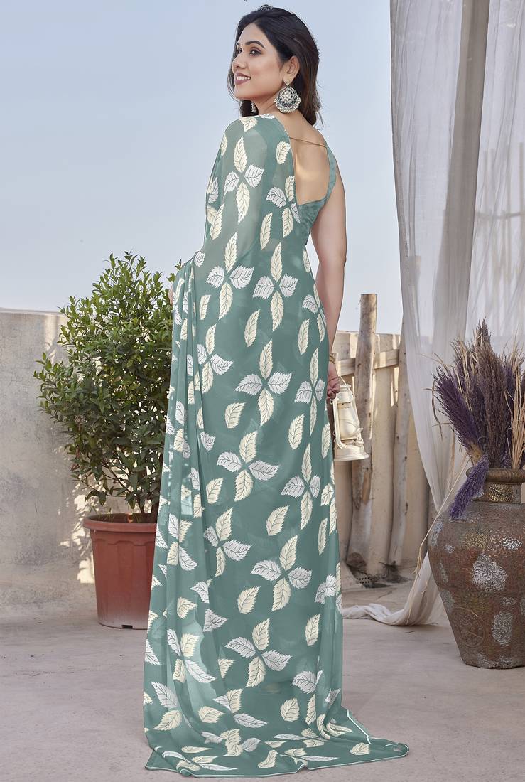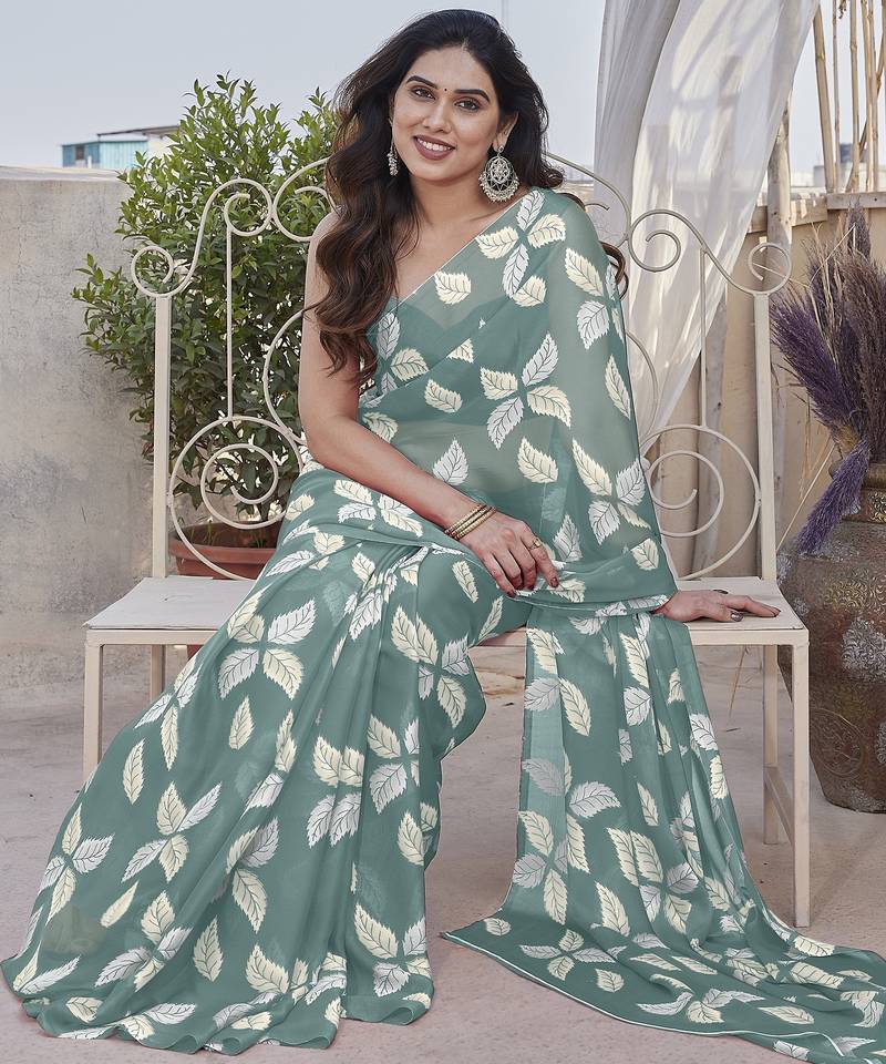 | Product Name | Teal Floral Print Chiffon Saree With Blouse Piece | |