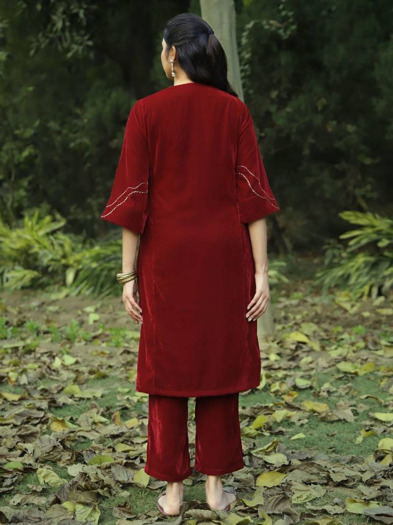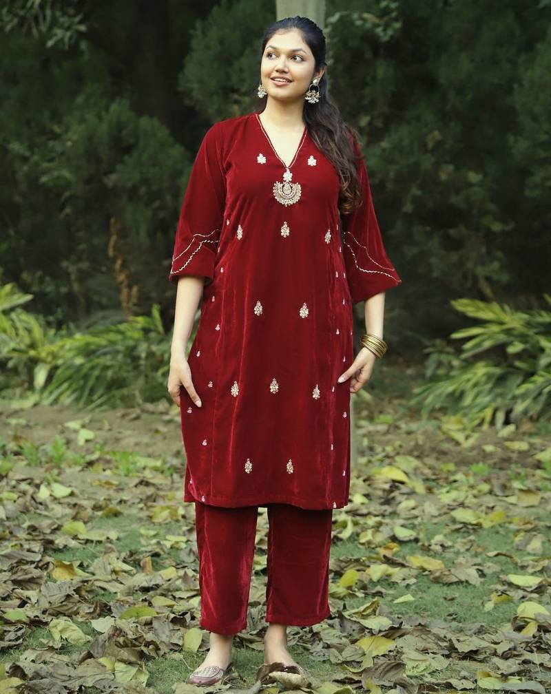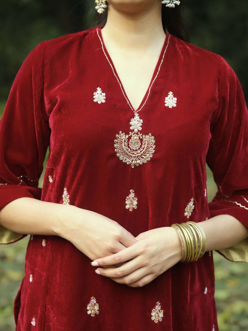 | Product Name | Red Velvet Hand Embroidered Kurta Set | |