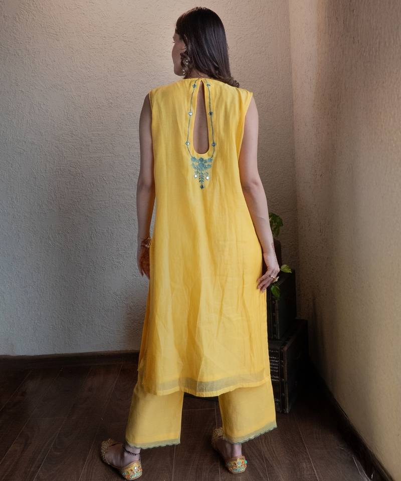| Product Name | Yellow Chanderi Mirrorwork Embroidered Kurta Set With Dupatta | |
