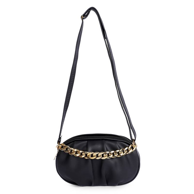 | Product Description | Turn Everyday Style Into A Statement With The Veronly Chain Accent Sling Bag. Designed With Soft Pleated Detailing And A Sleek Silhouette, It Combines Elegance With A Modern Edge. The Metallic Chain Embellishment Adds A Chic Touch, While The Adjustable Strap Ensures All Day Comfort. With Multiple Zip Compartments, This Bag Offers Both Practicality And Poise — Perfect For Your Day To Night Look. |