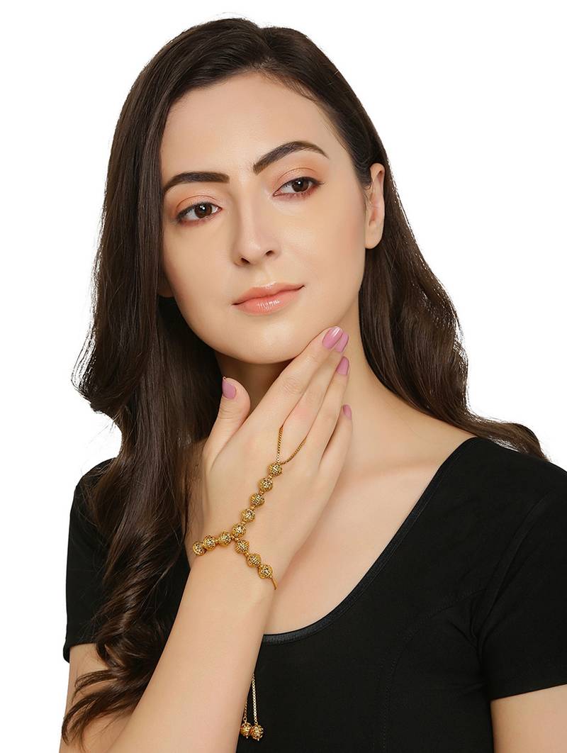 | Product Description | •Sri Shringarr Fashion Fancy Micro Gold Polished Golden Beads Hathphool/ Hathpanja/ Hand Harness/ Bracelet/ Kada Designed By Yosshita And Neha.