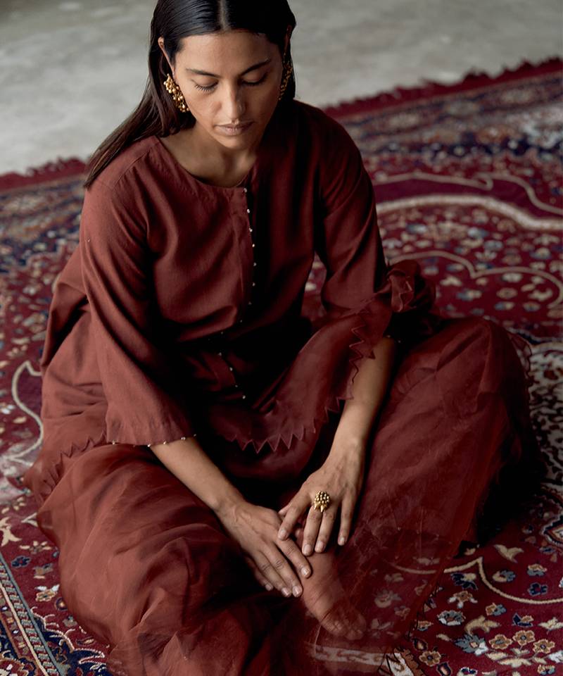 | Product Description | Featuring Brown Akpa Kurta. Moti Detailing On Hem. |