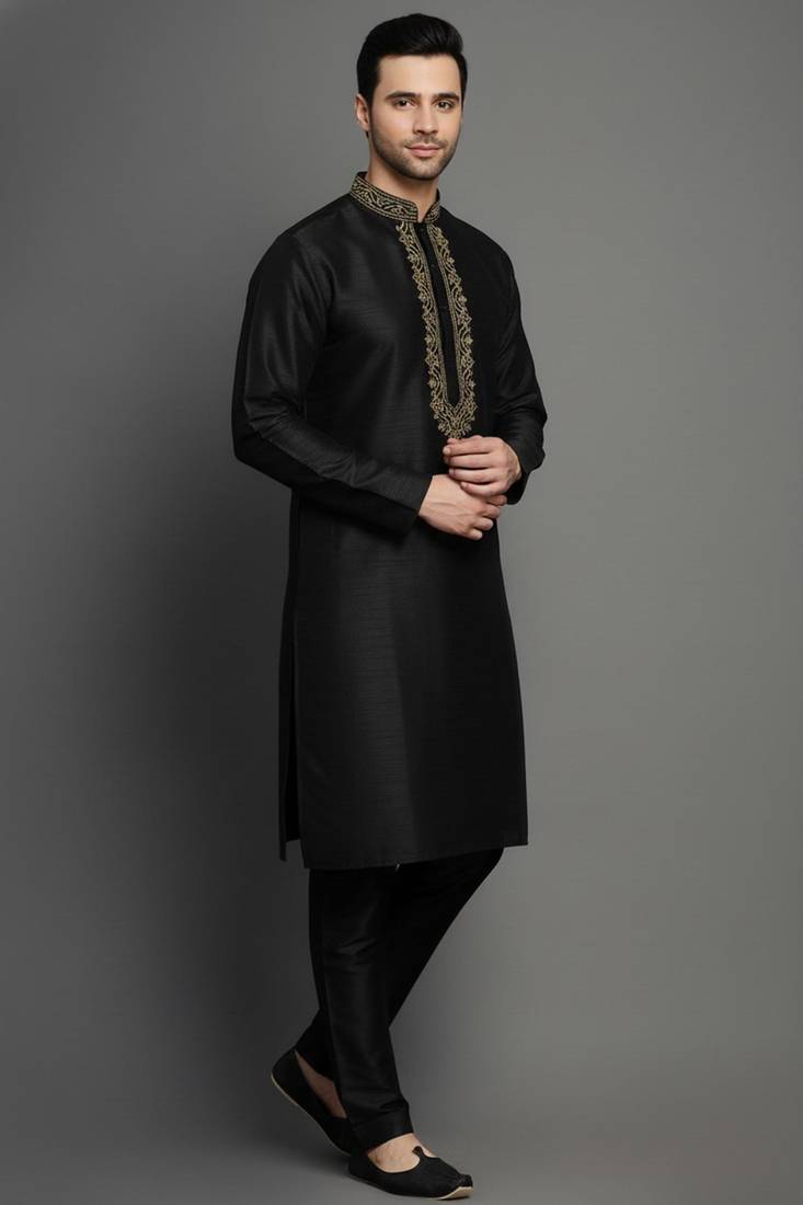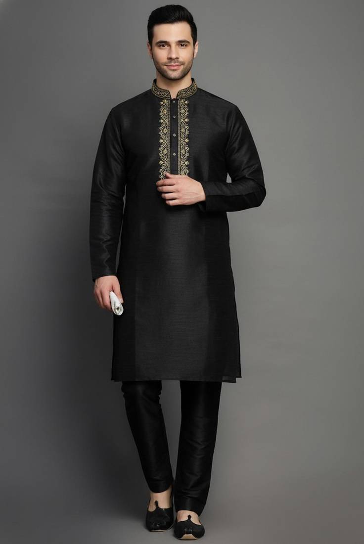 | Product Name | Black Dupion Embroidery Kurta Pajama | |
