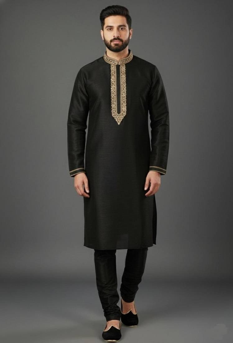 | Product Name | Black Dupion Embroidery Kurta Pajama | |