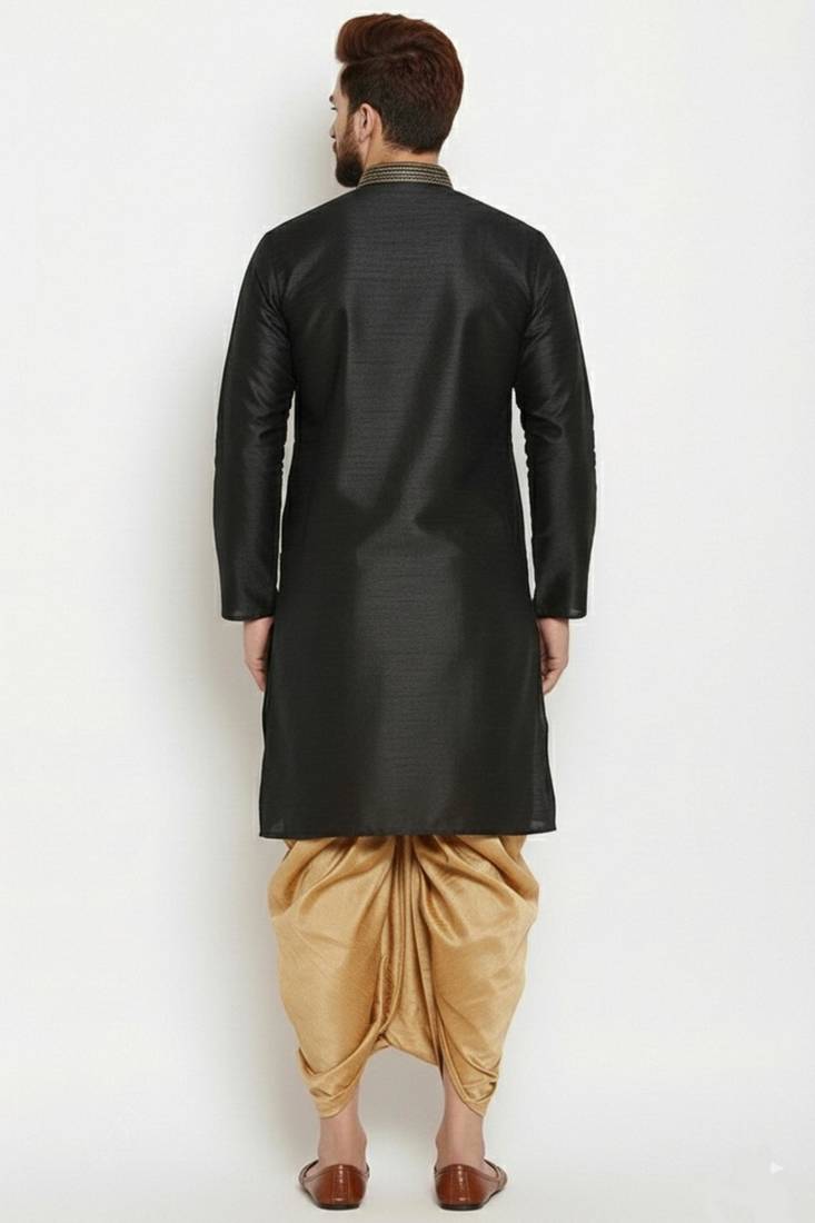 | Product Description | Black Embroidered Dupion Art Silk Kurta Set |