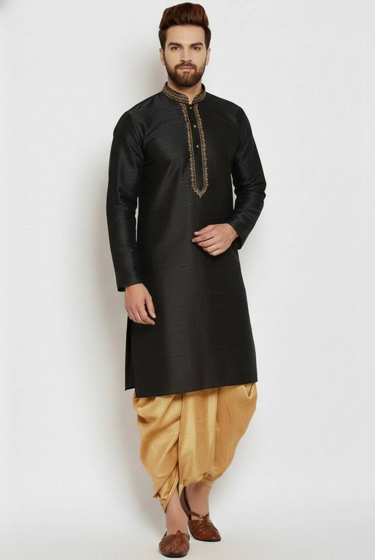 | Product Description | Black Embroidered Dupion Art Silk Kurta Set |