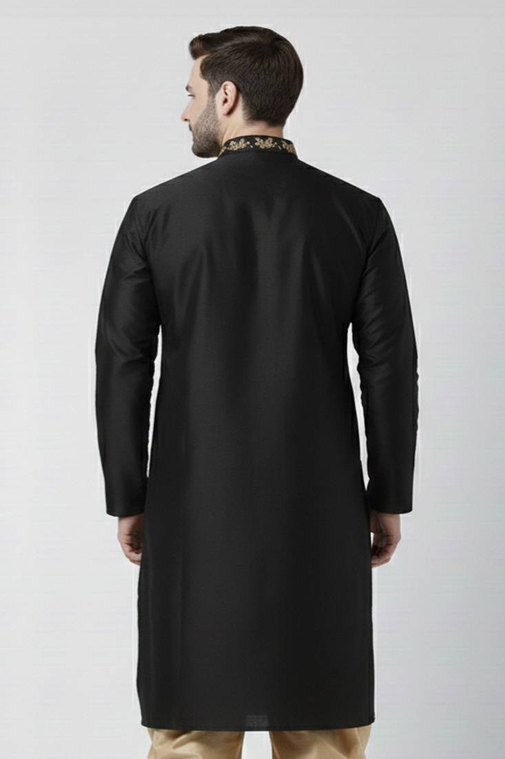 | Product Name | Black Embroidered Dupion Silk Kurta | |