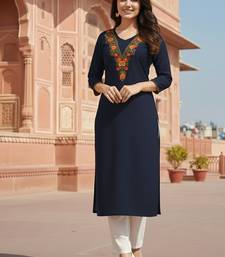 Black embroidered rayon kurta set stitched