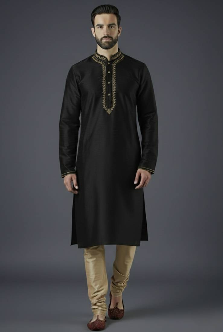 | Product Name | Black Embroidery Dupion Silk Kurta Set | |