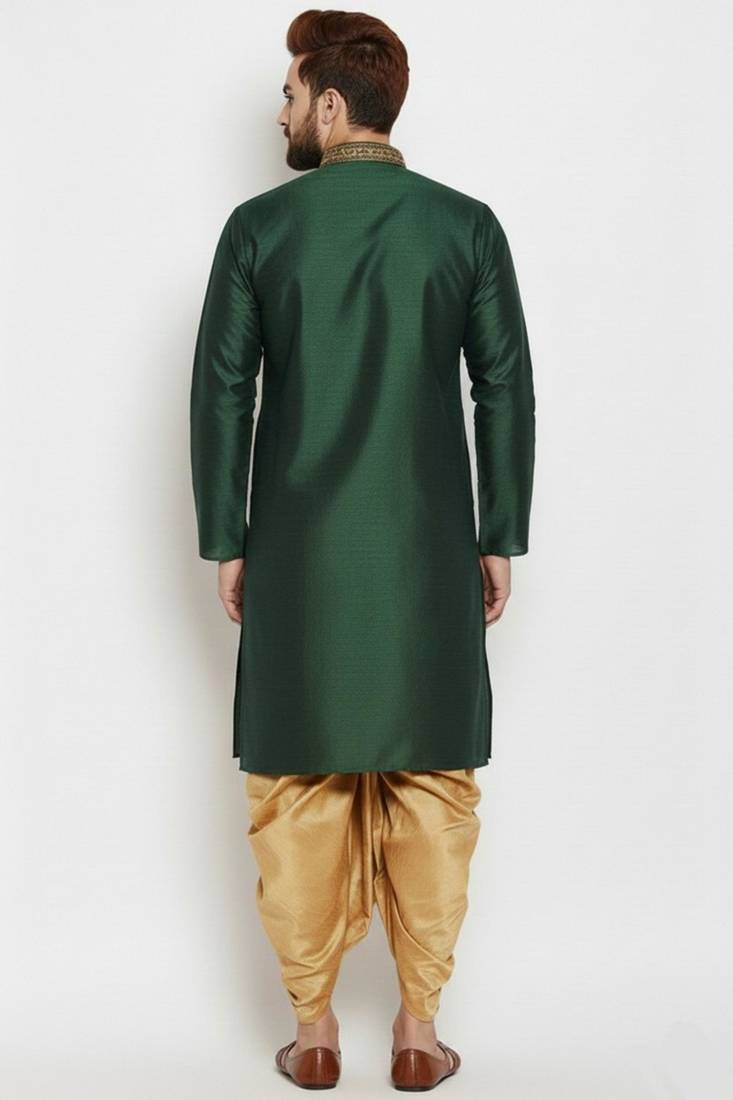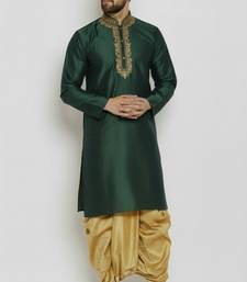| Product Description | Bottle Green Embroidered Dupion Art Silk Kurta Set |