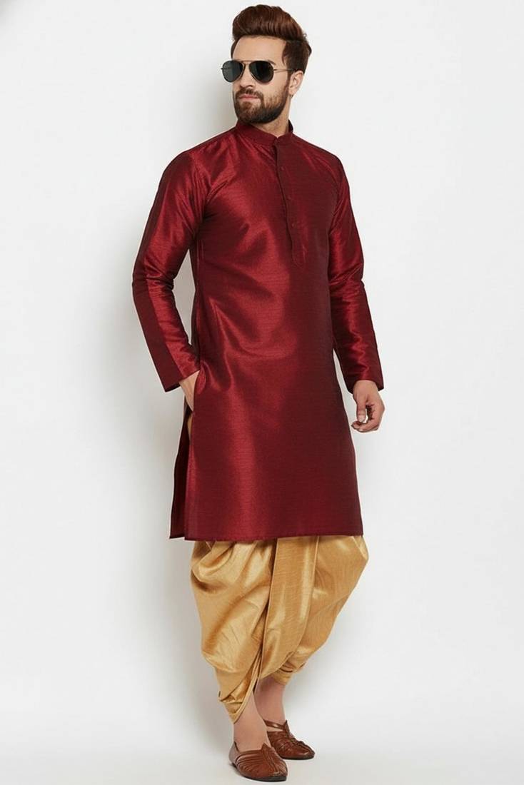 | Product Description | Maroon Dupion Art Silk Kurta Set |