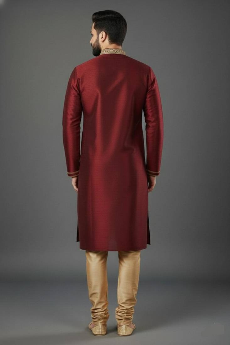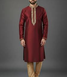 | Product Description | Product: Maroon Dupion Embroidery Kurta Pajama. Top Fabric: Dupion. Bottom Fabric: Dupion. Work: Embroidery. Slight Variation In Color / Design / Print May Vary. |