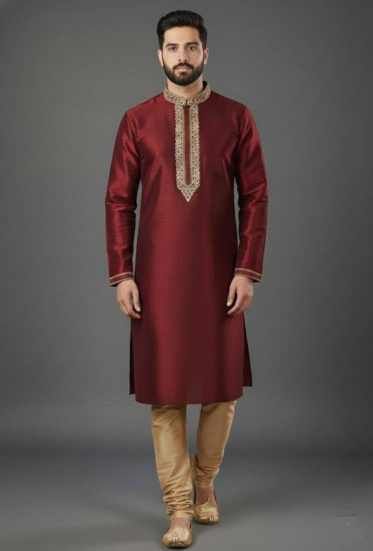 | Product Name | Maroon Dupion Embroidery Kurta Pajama | |