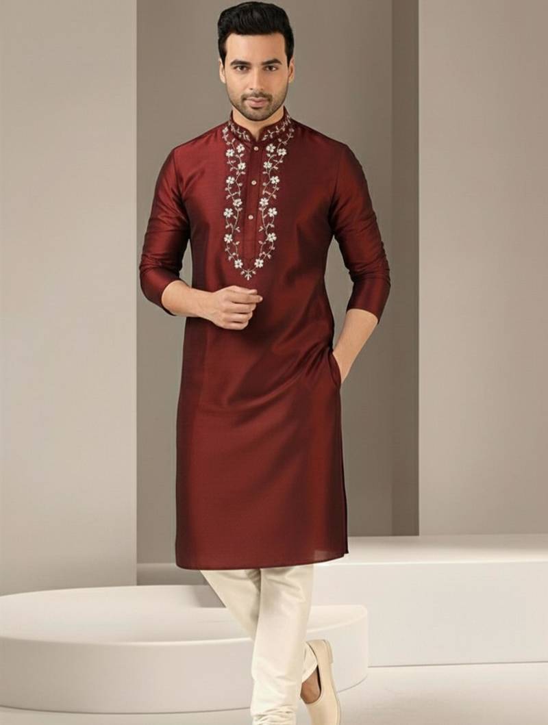 | Product Name | Maroon Dupion Embroidery Kurta Pajama | |