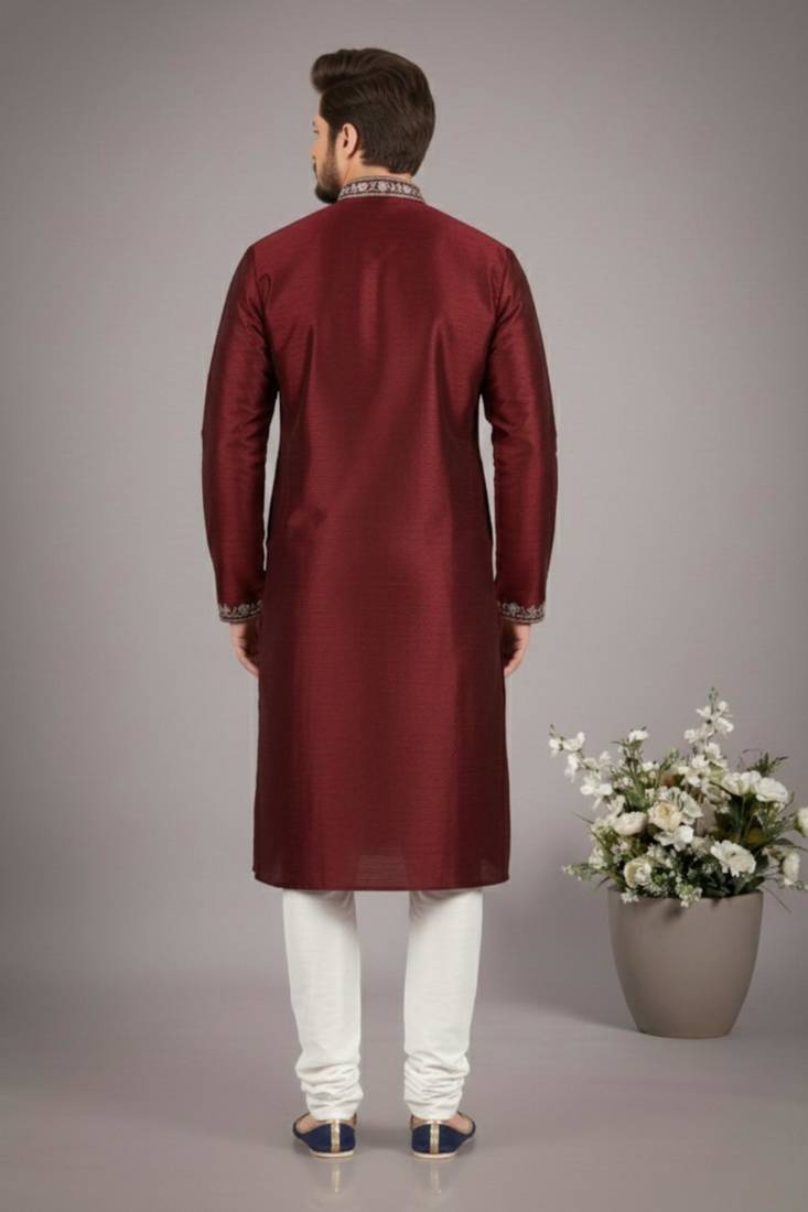 Maroon dupion embroidery kurta-pajama