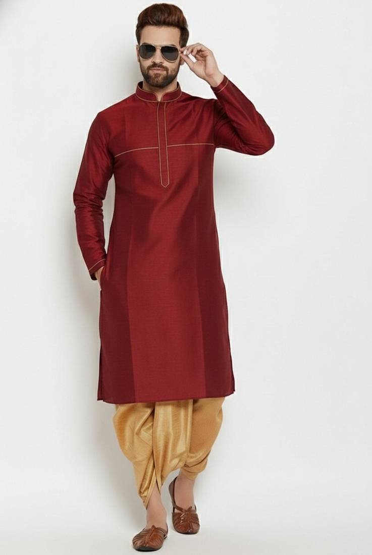 | Product Description | Maroon Embroidered Dupion Art Silk Kurta Set |