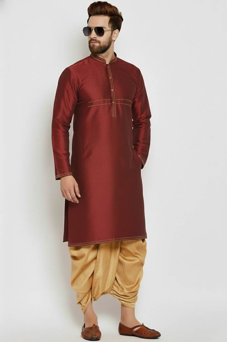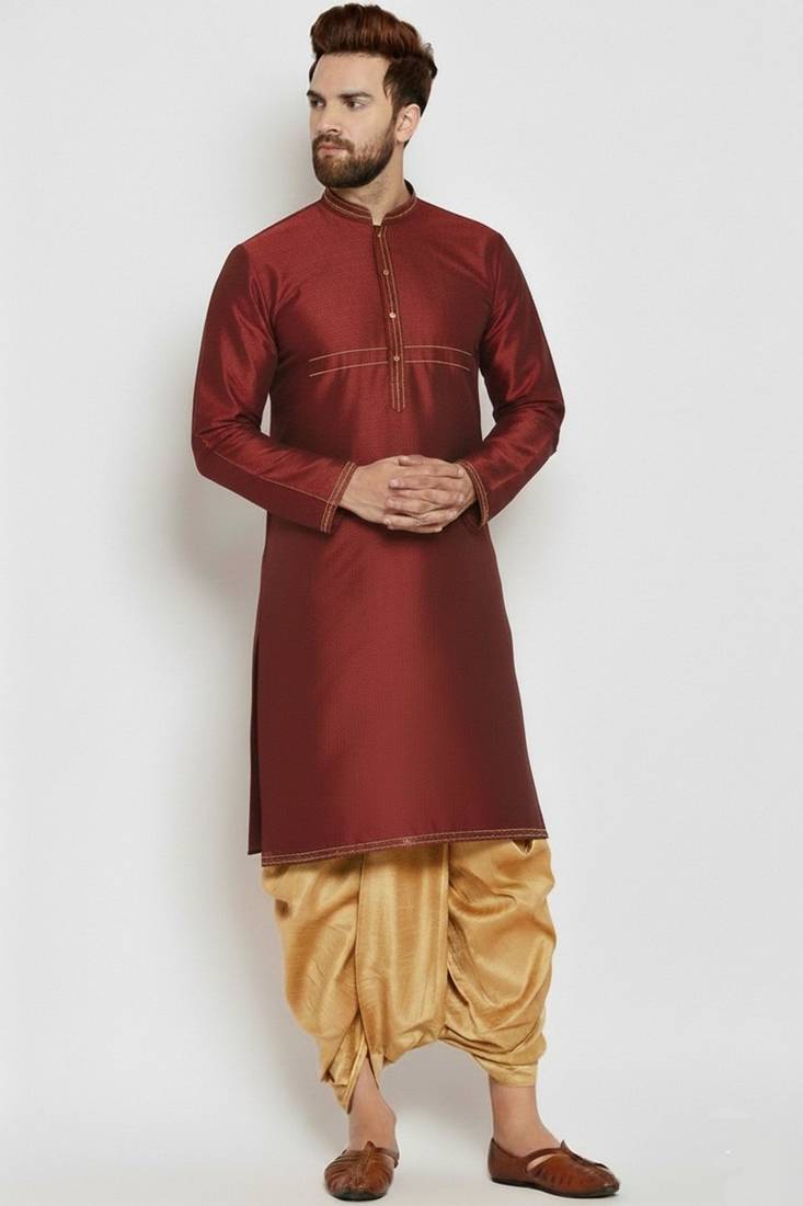 | Product Description | Maroon Embroidered Dupion Art Silk Kurta Set |
