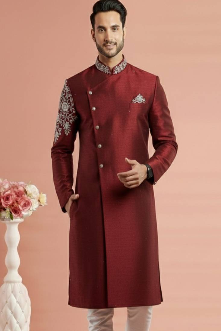 | Product Name | Maroon Embroidered Dupion Silk Kurta | |