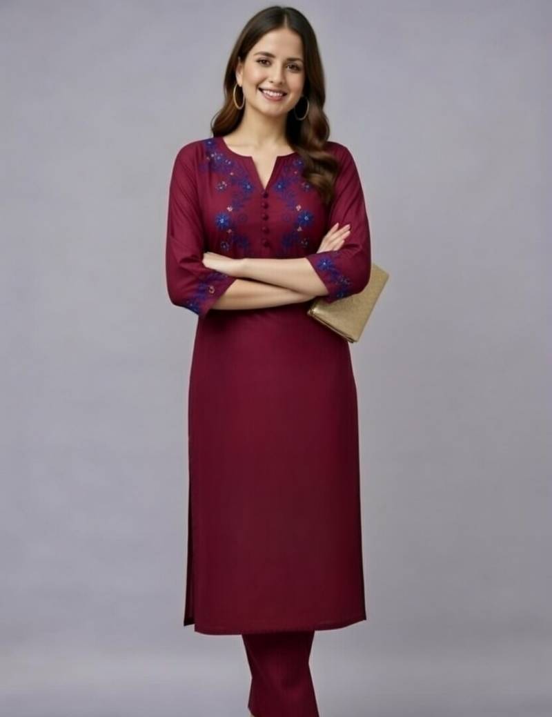 | Product Name | Maroon Embroidered Rayon Kurta Set | |