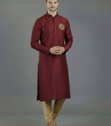 Maroon embroidery dupion silk kurta set