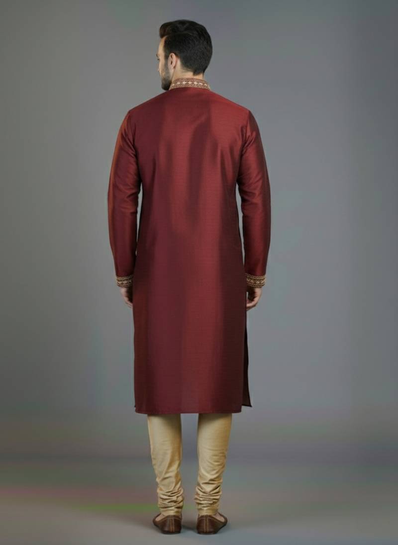 | Product Name | Maroon Embroidery Dupion Silk Kurta Set | |