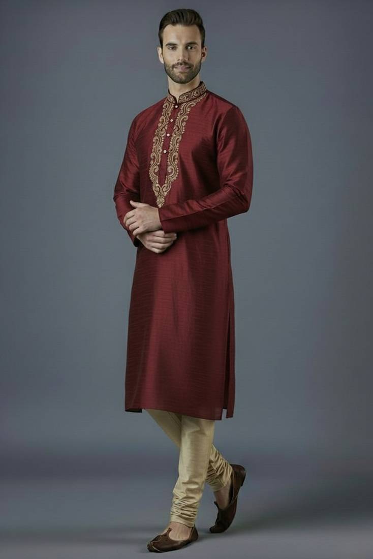 | Product Name | Maroon Embroidery Dupion Silk Kurta Set | |