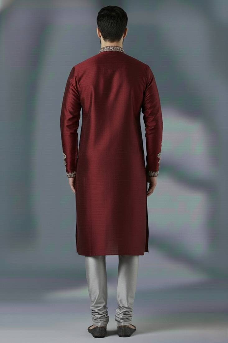 | Product Name | Maroon Embroidery Dupion Silk Kurta Set | |