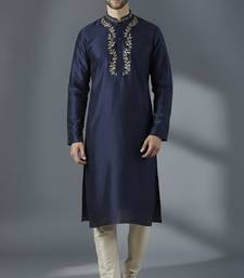 Navy dupion silk embroidered kurta set