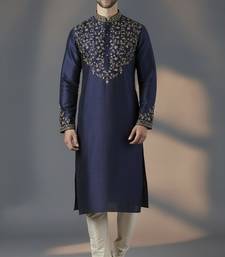 Navy dupion silk embroidered kurta set